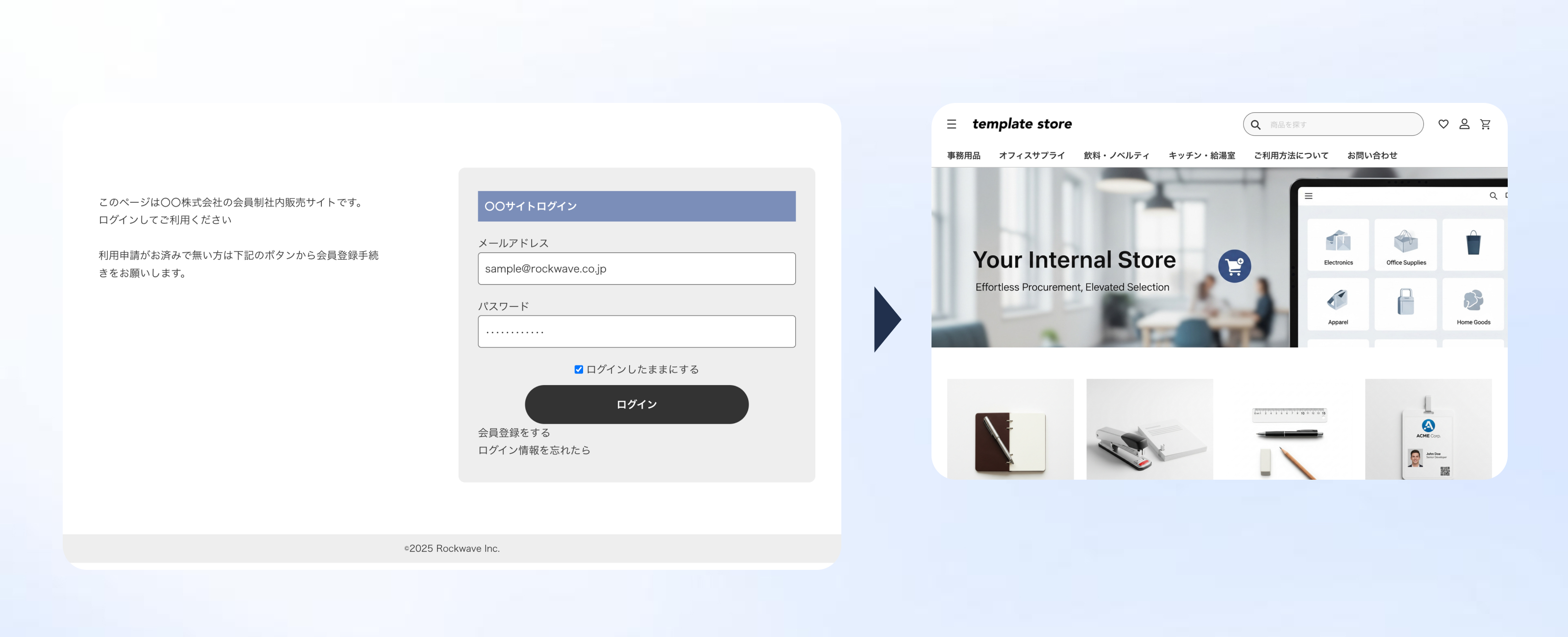 サイトは一般公開して、購入は特定のユーザーのみ制御するなど様々な制御に対応しています。