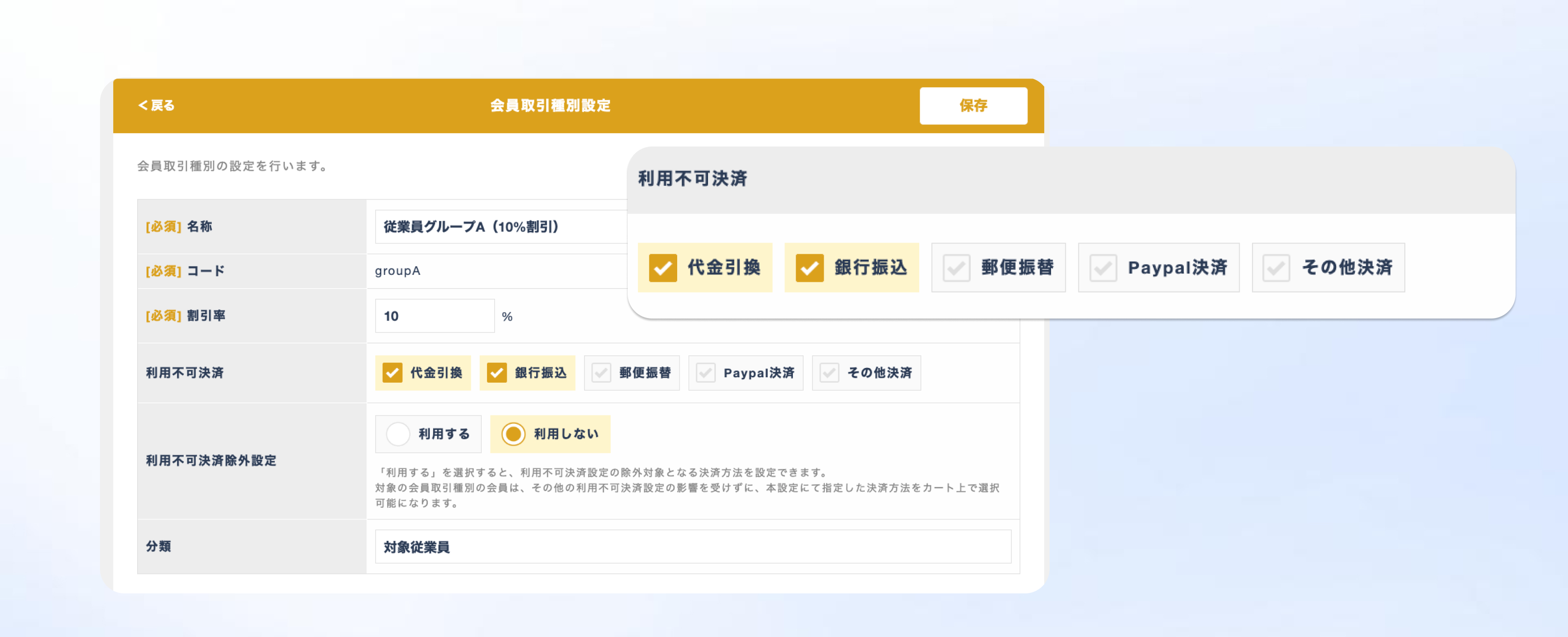 会員種別によって利用できる決済を変更したい。