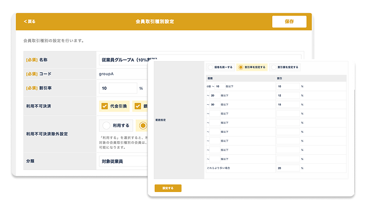 ログイン時に識別されるユーザー属性(従業員・取引先・代理店など)に応じて、同じ商品でも異なる価格を自動的に表示することが可能です。これにより、社内販売では従業員特別価格を、取引先には契約条件に応じた価格を柔軟に設定でき、正確で公平な価格提供を実現します。