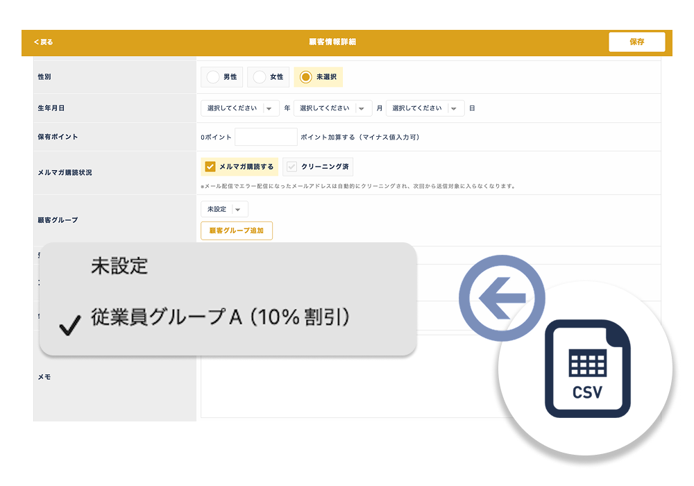 会員属性の振り分けはCSVファイルでまとめて設定可能
