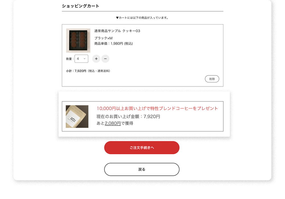 条件未達成時「あと〇〇円分購入でプレゼント」訴求でついで買いを促進