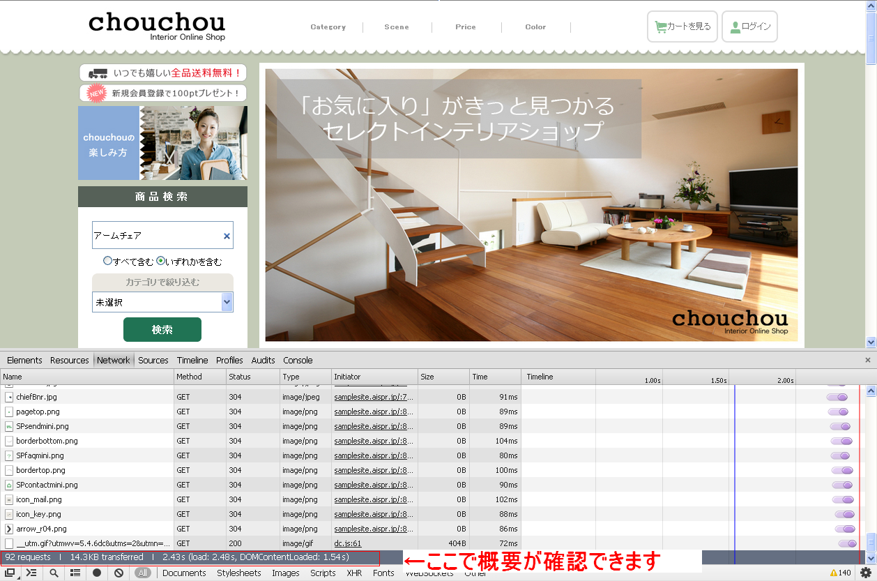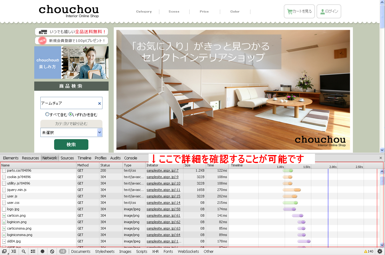 Webページを表示するのにどのくらいのリクエストがあり、また各ファイル毎に表示にどのくらい時間がかかったのか計測・可視化してくれるツールです。