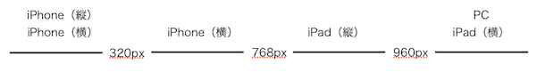 一般的ななブレイクポイントの設定パターンと端末例は下記のようになります。