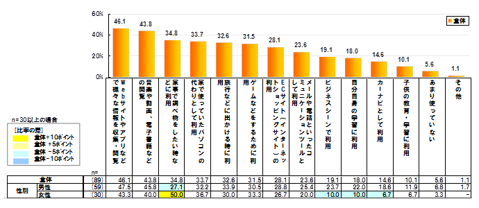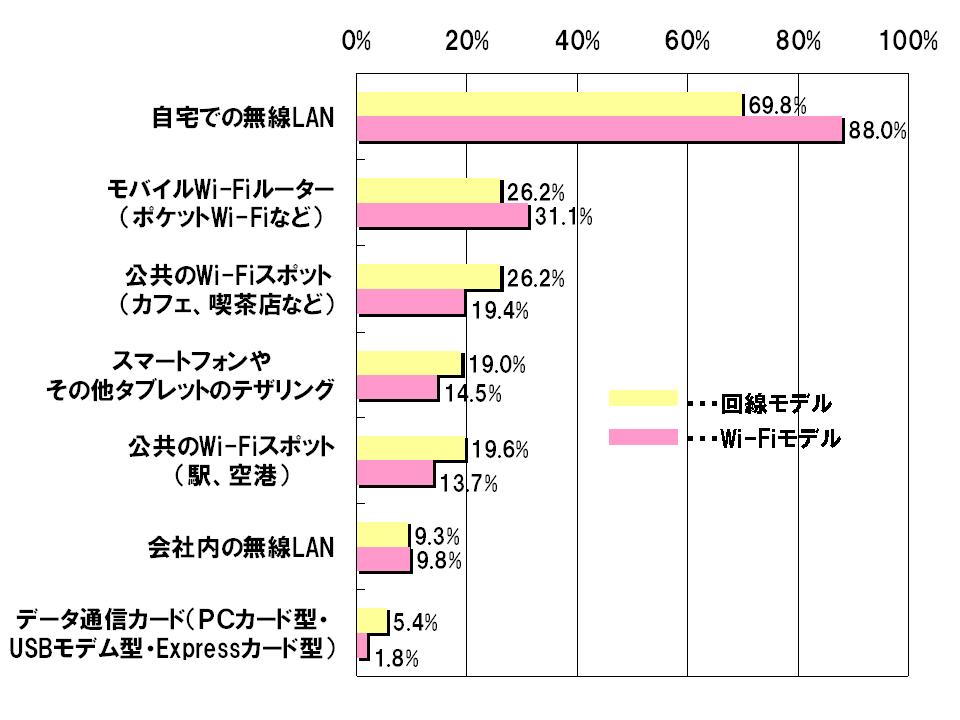 表からは自宅で高速回線を使いながらインターネット接続をしているユーザーが半数以上ということがわかります。また、ユーザーの行動パターンをみてみると下記のような実態がわかります。