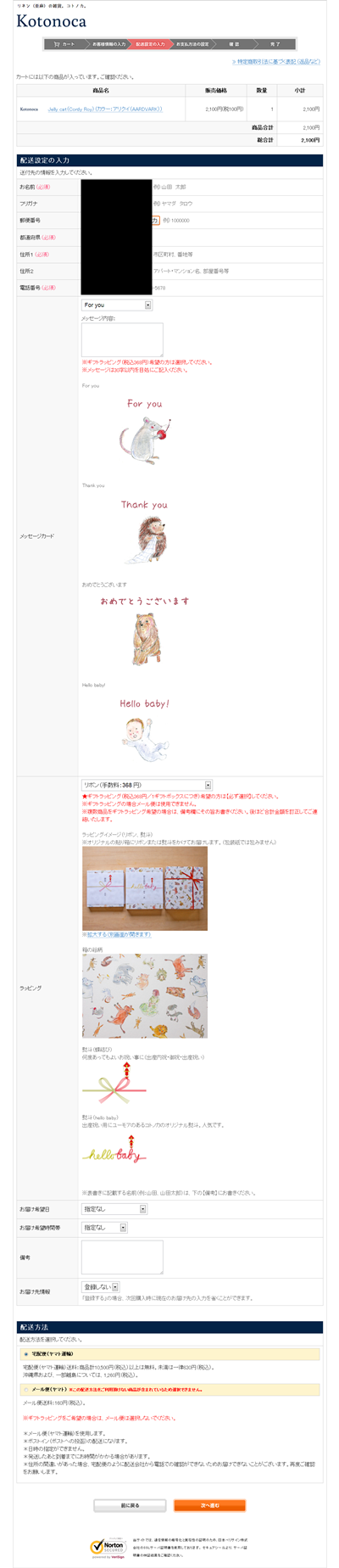 メッセージカードやラッピングを選べるようになっています。写真やイラスト入りでわかりやすいです!